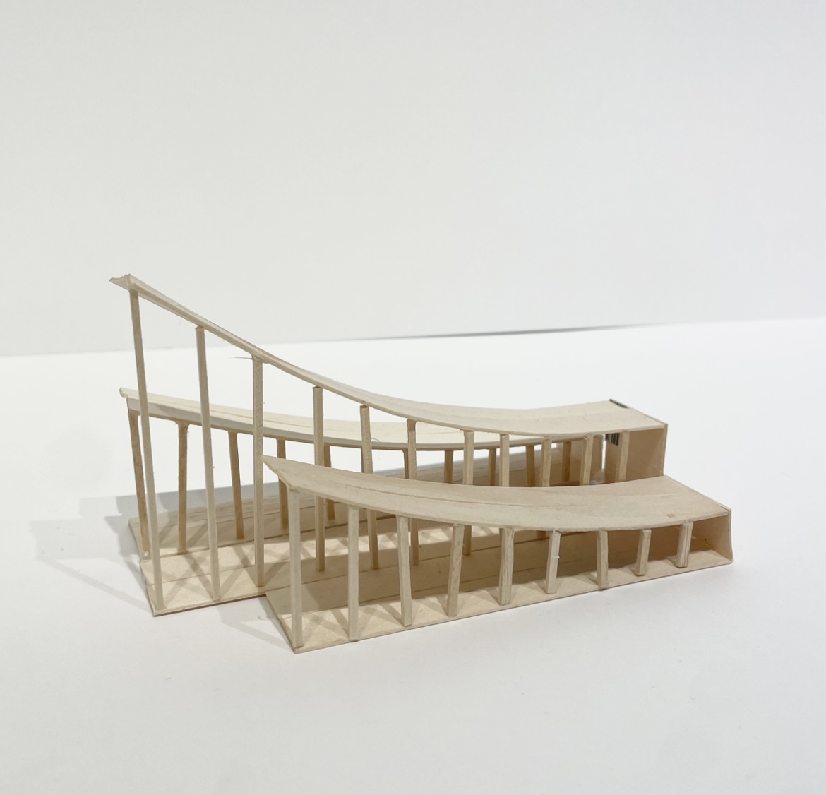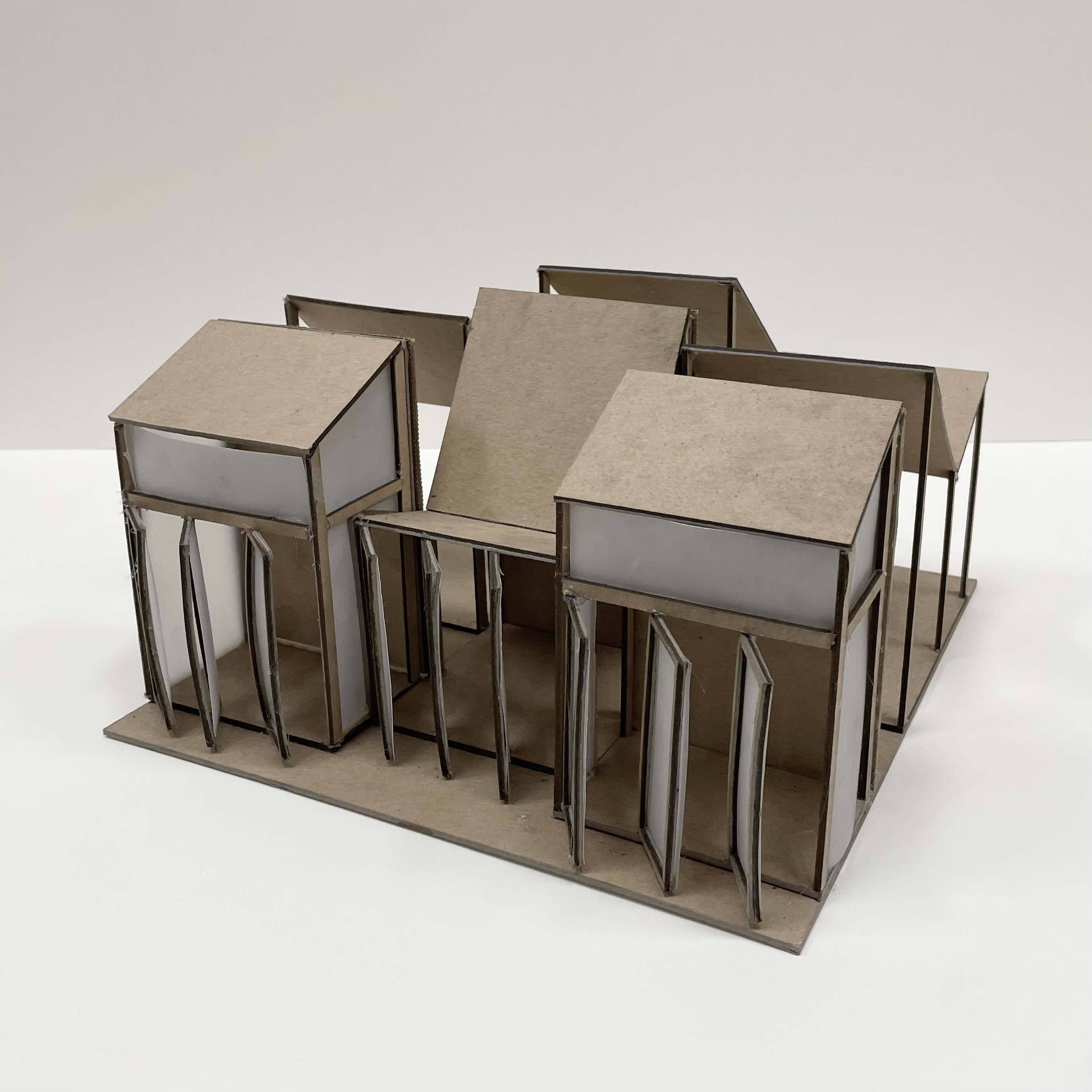 (Above) Pavillion Concept model exploring ways of staggering lighting, height, private, and public space
